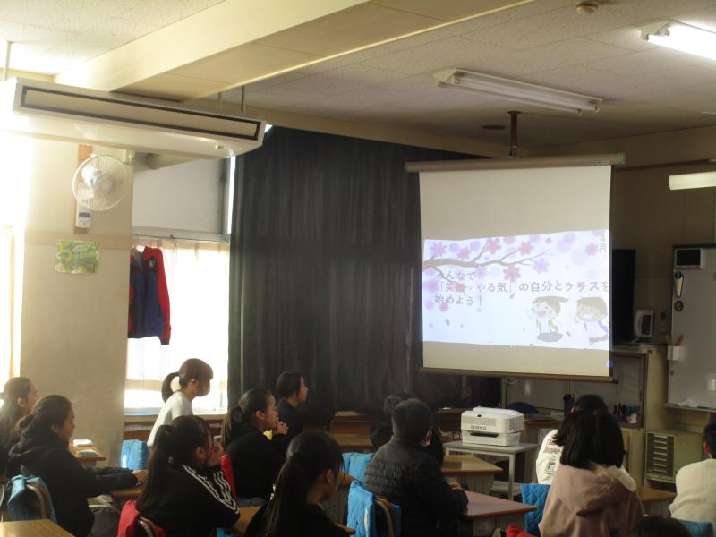 1月6日(火)、冬休み明け最初の登校日に、「第5ステージ始まりの会」を行いました。子供たちは自分の教室で放送を聞きながら、オンラインで送られる説明や画像を見る形で会を行いました。校歌を各教室で歌い、生徒指導担当、心つくり担当、学びつくり担当の各先生から、第5ステージについての話をしました。この1年のまとめであり、集大成のステージを大切にして過ごしてほしいと思います。